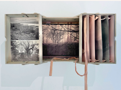 Eileen has been commissioned to produce a limited edition of bespoke photographs to celebrate the launch of the physical limited edition collectors’ volume. Using her nuanced processes of printing on recycled packaging using plant-based developers, she will be focusing on memorial flowers, signifiers of remembrance that are placed near the graves in the cemetery, now nature reserve, where her studio is based.